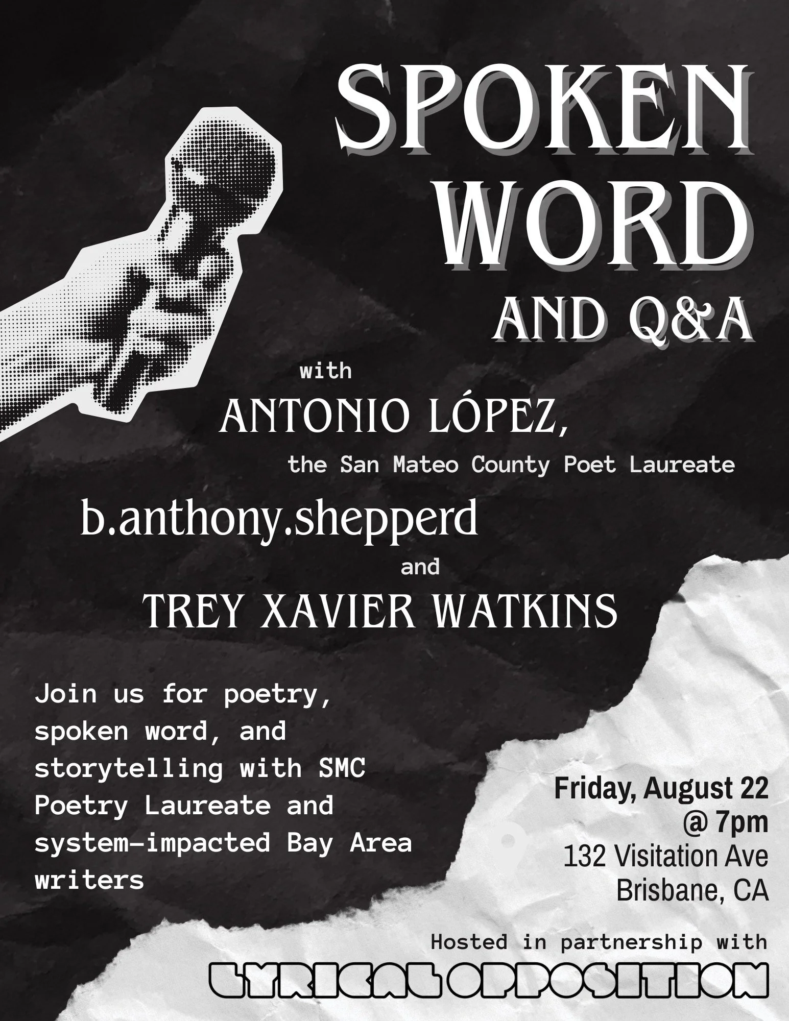 Join us for poetry, spoken word, and storytelling with San Mateo Poet Laureate and system-impacted Bay Area writers.
